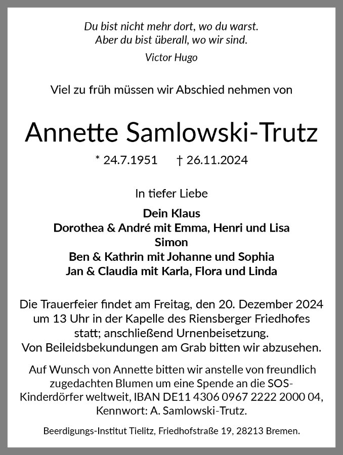 gestorben am 26. November 2024 in Bremen