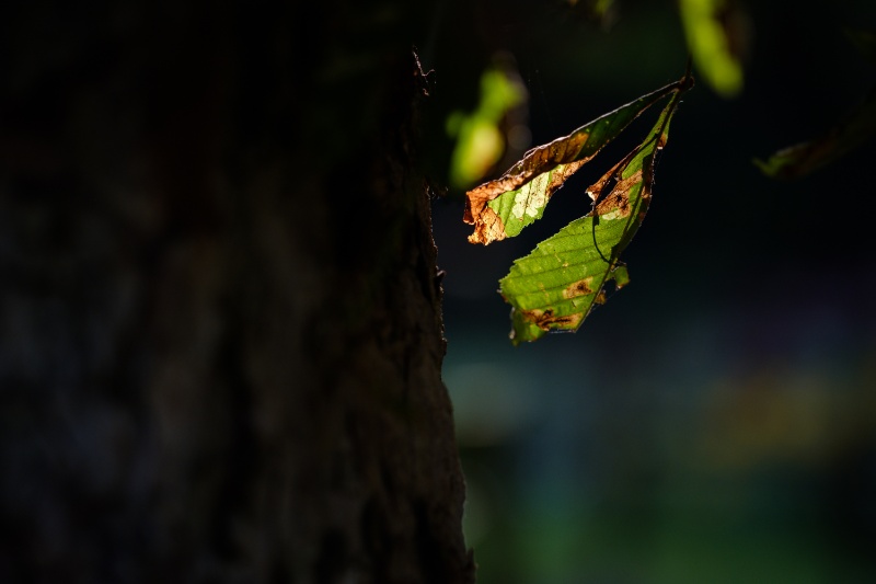 Dunkel hüllt den Wald in Stille,