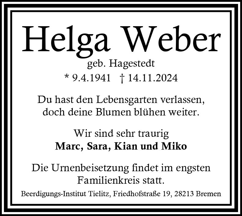 gestorben am 14. November 2024 in Bremen