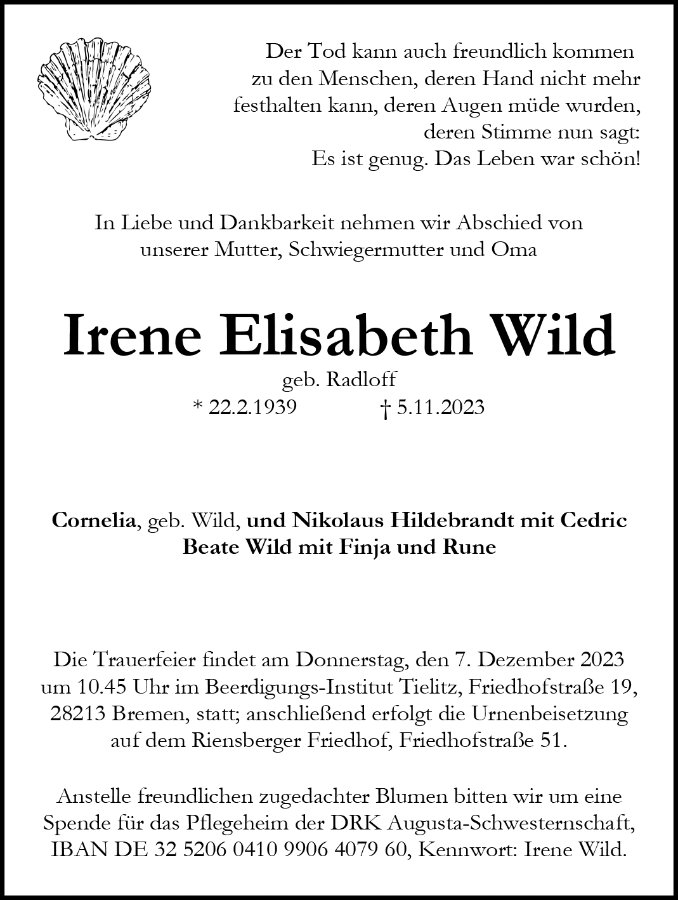 Urnenbeisetzung nach Urnentrauerfeier, Riensberger Friedhof