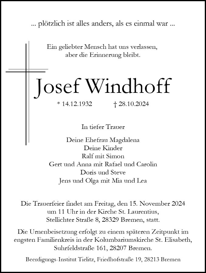 in dieser Zeit des Schmerzes wünschen wir Ihnen Kraft, den Verlust im Kreise Ihrer Liebsten zu verarbeiten. Als Zeichen unserer Anteilnahme und des Gedenkens entzünden wir dieses erste Licht. Möge diese Gedenkseite Ihnen helfen, Erinnerungen zu teilen und so das Andenken gemeinsam wachzuhalten.