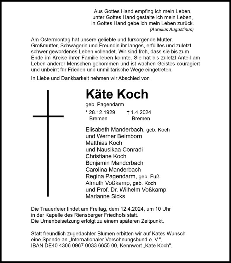 gestorben am 1. April 2024 in Bremen