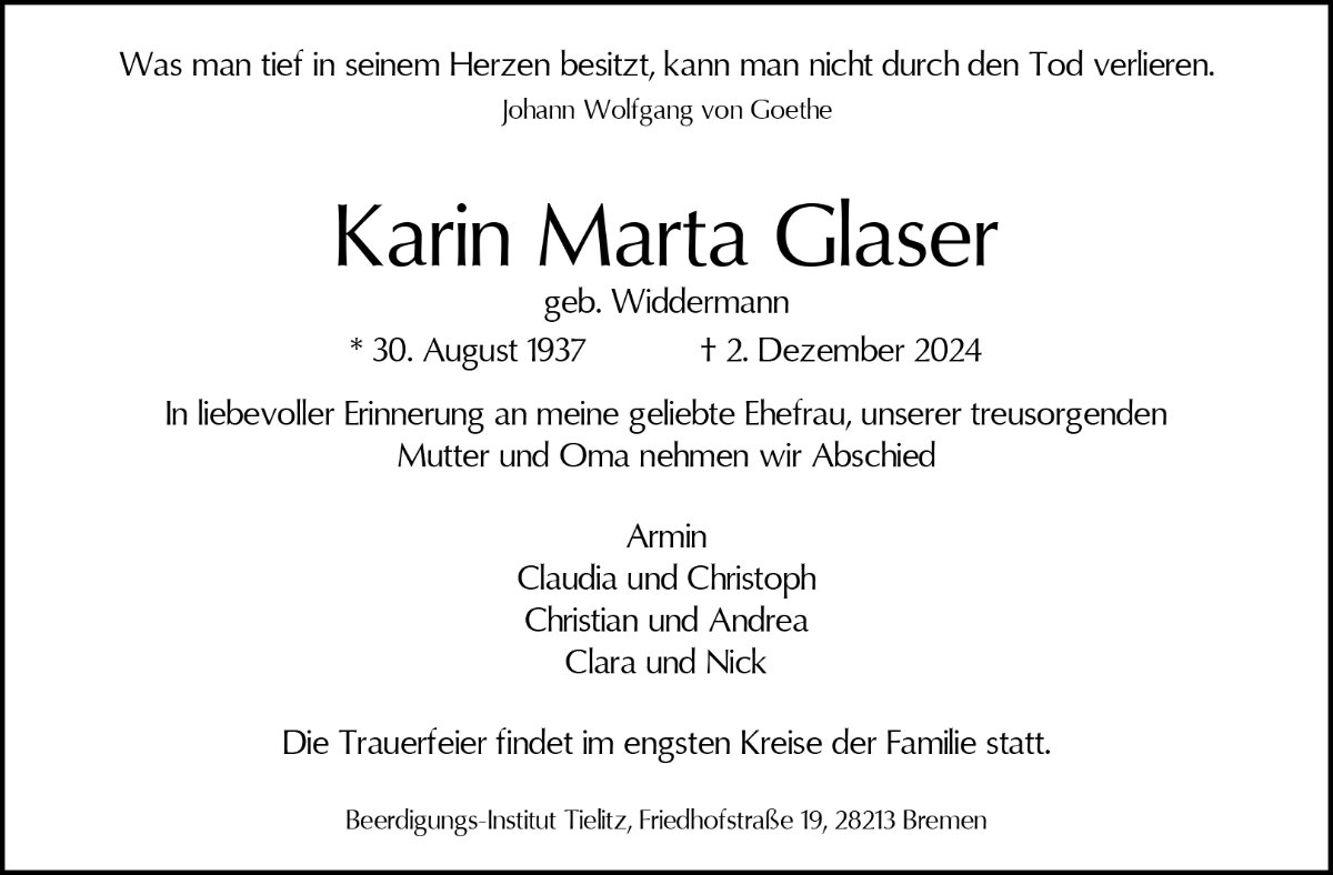 Karin Glasergestorben am 2. Dezember 2024