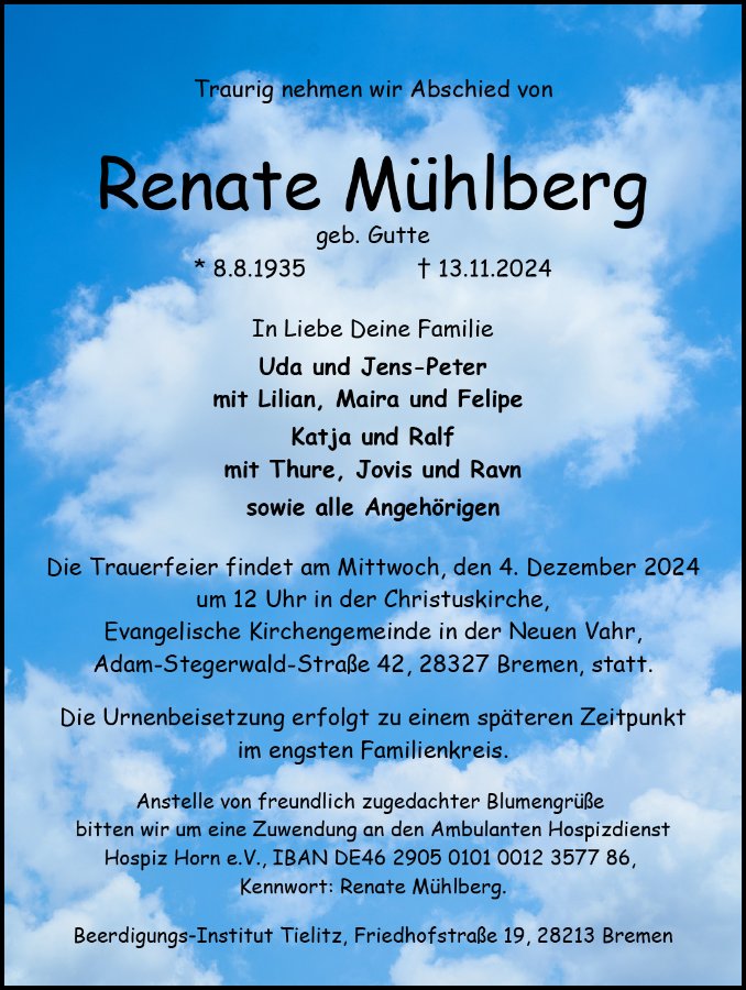 in dieser Zeit des Schmerzes wünschen wir Ihnen Kraft, den Verlust im Kreise Ihrer Liebsten zu verarbeiten. Als Zeichen unserer Anteilnahme und des Gedenkens entzünden wir dieses erste Licht. Möge diese Gedenkseite Ihnen helfen, Erinnerungen zu teilen und so das Andenken gemeinsam wachzuhalten.