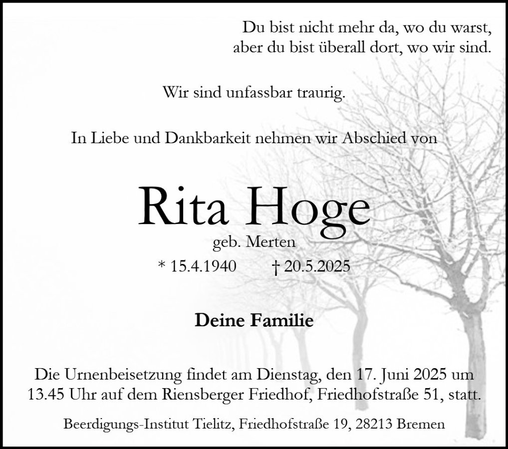 gestorben am 20. Mai 2025 in Bremen