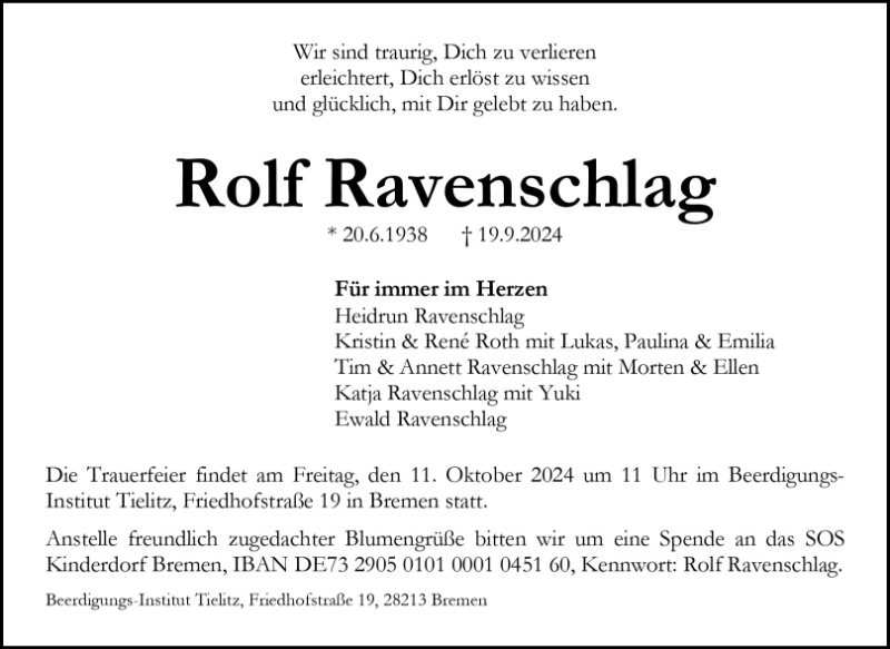 wir wünschen Ihnen für die kommende Zeit viel Kraft und dass es Ihnen gelingt, dankbar auf die positiven Erinnerungen zurückzublicken. Diese Gedenkseite möge Ihnen dabei helfen, Ihre Trauer zu teilen und das Andenken gemeinsam wachzuhalten.