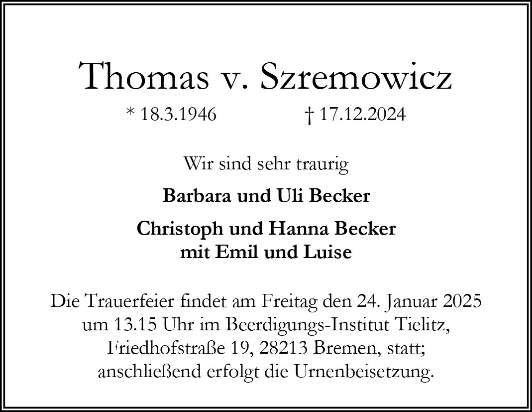 Tomasz von Szremowiczgestorben am 17. Dezember 2024