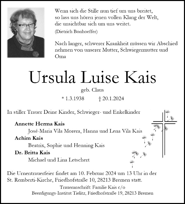 gestorben am 20. Januar 2024 in Bremen