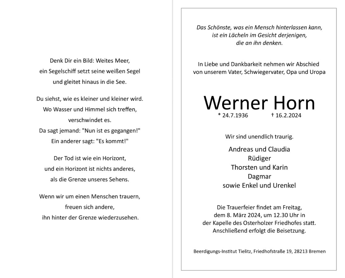 Werner Horngestorben am 16. Februar 2024